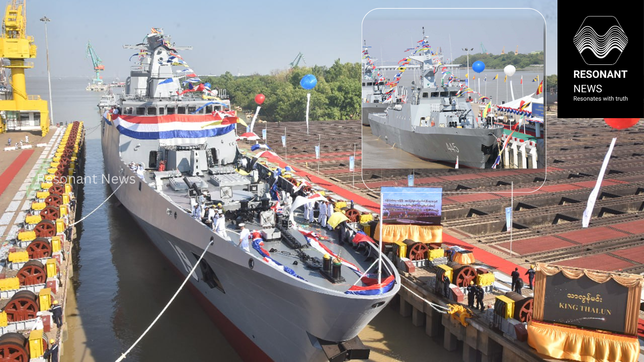 On December 24, the Myanmar Navy celebrated its 77th Navy Day with the launch and naming of its newly constructed 135-meter frigate, King Thalun. The ceremony took place at the Navy Dockyard Headquarters in Thanlyin and was attended by Senior General Min Aung Hlaing, Commander-in-Chief of Defence Services, along with high-ranking officials, their spouses, and invited guests.